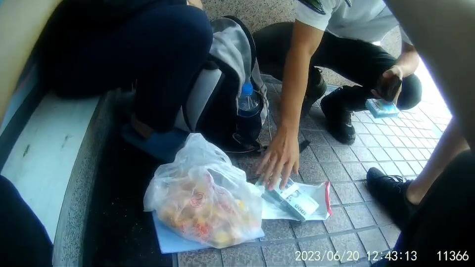 警方在車手背包中搜出詐騙來的現金。畫面讀者提供