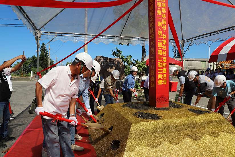 四湖鄉「四湖鄉林厝村、林東村村落防護治理一、二期工程」2日由縣長張麗善主持開工動土典禮,縣長張麗善表示,這項工程將林東、林厝兩村雨排水分流分治,擴充蓄洪排水能量,紓解當地淹水問題。