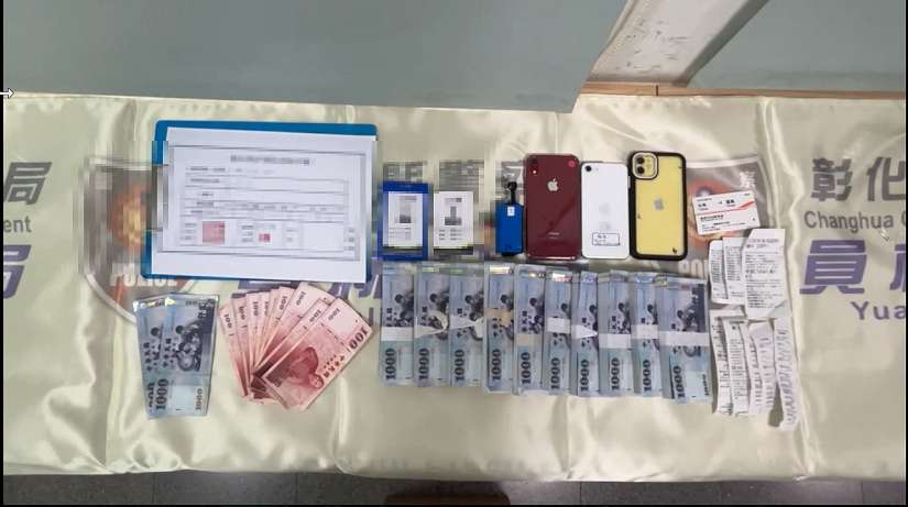 查扣胡嫌身上攜帶○○投資公司收據及工作證、工作手機等相關證物及面交現金新臺幣30萬餘元-圖/彰化縣警局提供