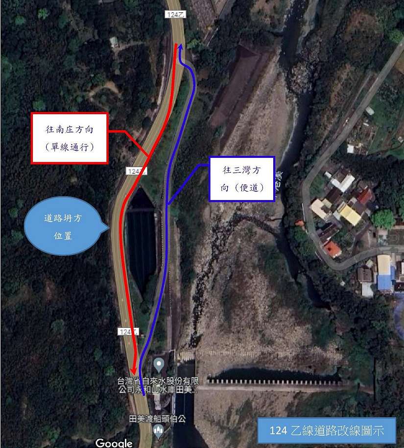 據縣府人員表示,目前邊坡仍處於不穩定狀態,鄉公所也持續派機具清除土石,並擺放紐澤西護欄實施交維。故行經該路段時均採分流方式通行,往南庄市區方向採124乙線單線單向通行,往三灣方向請民眾配合指引改走攔河堰旁便道,縣府及鄉公所持續監測邊坡,並視情況調整封路措施。
