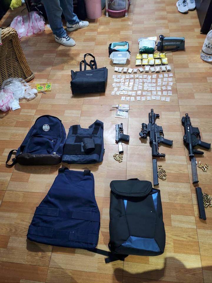 隨後警方在陳嫌車上、住處起出長槍2把、短槍2把、子彈50餘發、防彈衣2件、安非他命、海洛因數十包及毒品分裝設備,另外在住處還發現1枚疑似土製爆裂物,先封鎖現場通知防爆小組到場處理,警詢後將陳嫌依法偵辦。(記者黃子瑋/台北報導)