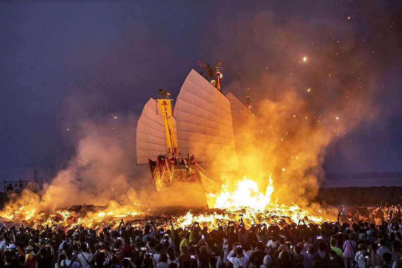 其中最為人熟知的就是「送王-燒王船」,王船上會「添載」物品,包含航行用所備物品、文案用品、衣著服飾、日常工具、煮食用具、食物蔬果、消遣用品、起居用品、梳洗用品等應有盡有,希望讓代天巡狩千歲爺在回天庭繳旨的旅途中,三餐無虞,並期望未來三年地方合境平安、信眾豐衣足食。當王船焚燒時,象徵恭送王爺「遊天河」,瘟疫與晦氣也一同被送離,場面最為壯觀。