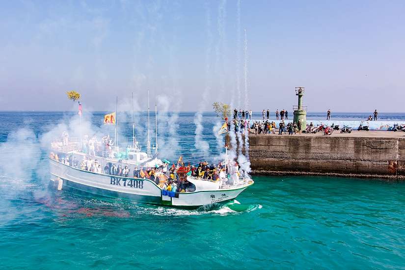 「逡港腳」則為小琉球特有的迎王儀式,近五十艘載著包含三隆宮三府千歲及碧雲寺觀音媽祖神轎的大小漁船,分別在大福(大寮)漁港與白沙漁港出發,遶島一周,具有驅除海域四周厄煞、保佑島上漁船出海平安與滿載盈歸之意。