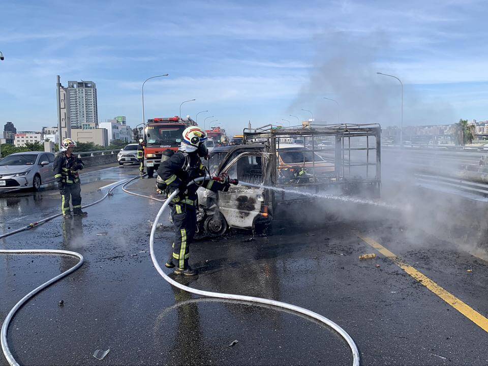 小貨車駕駛在逃生過程中,遭火吻有2度灼傷送醫。畫面讀者提供
