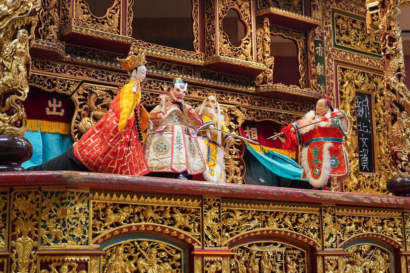 新北市傳統表演藝術保存者「亦宛然掌中劇團」,在傳統布袋戲戲台「彩樓」,帶來精采的布袋戲表演-圖/新北市政府提供