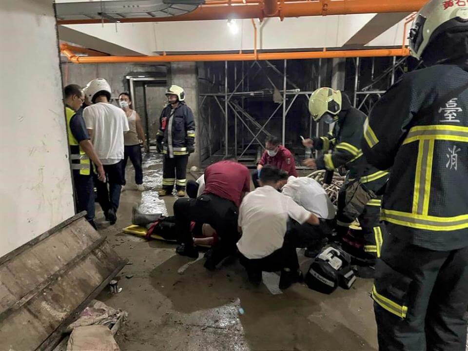 工人墜落B4沒有生命跡象,警消緊急將人送醫。畫面讀者提供