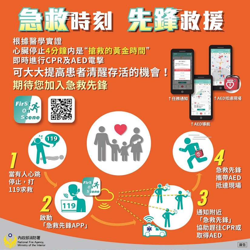 歡迎下載急救先鋒APP及加入Line 9119遠距檢傷緊急醫療救護系統