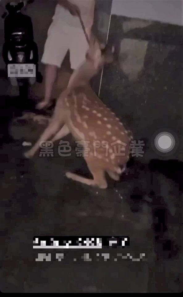前往綠島旅遊男子,私自將梅花鹿拉扯出鹿舍虐待。翻攝黑色豪門企業