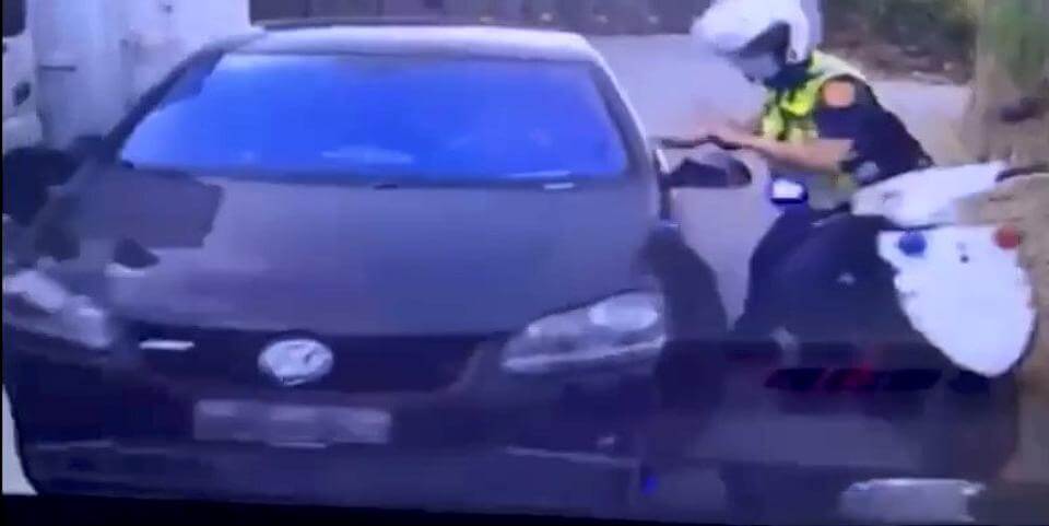 員警開車門喝令女駕駛下車受檢。畫面讀者提供