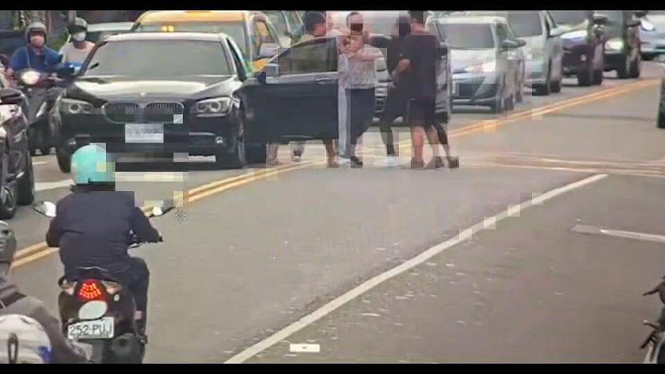 身穿黑衣的吳男、陳男先動手攻擊林男同車男子。畫面讀者提供