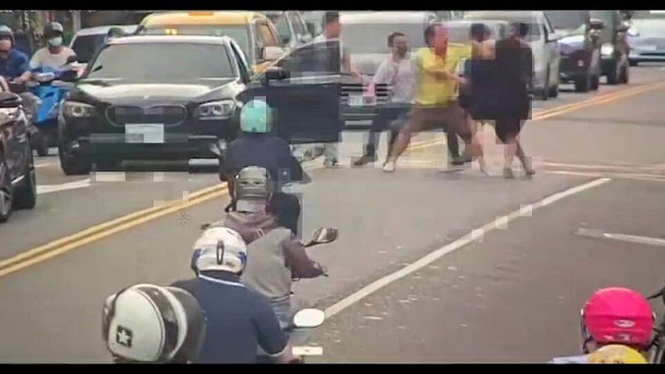 林男與友人回擊,雙方在馬路上全武行。畫面讀者提供