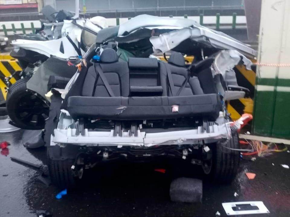 台中市台74線快速道路東往西方向,在松竹匝道口7日清晨5時許發生死亡車禍,1輛特斯拉電動車直接衝撞分隔島護欄,當場車體嚴重變形幾乎成了廢鐵,車內2名男子噴飛車外,當場沒了生命跡象,經送醫急救仍宣告不治,經抽血檢測2男都有酒精反應,至於誰是駕駛又怎麼會發生車禍,警方還要調查釐清。