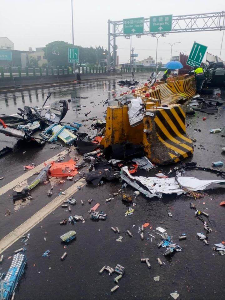 車禍現場到處散落車殼零件碎片。畫面讀者提供
