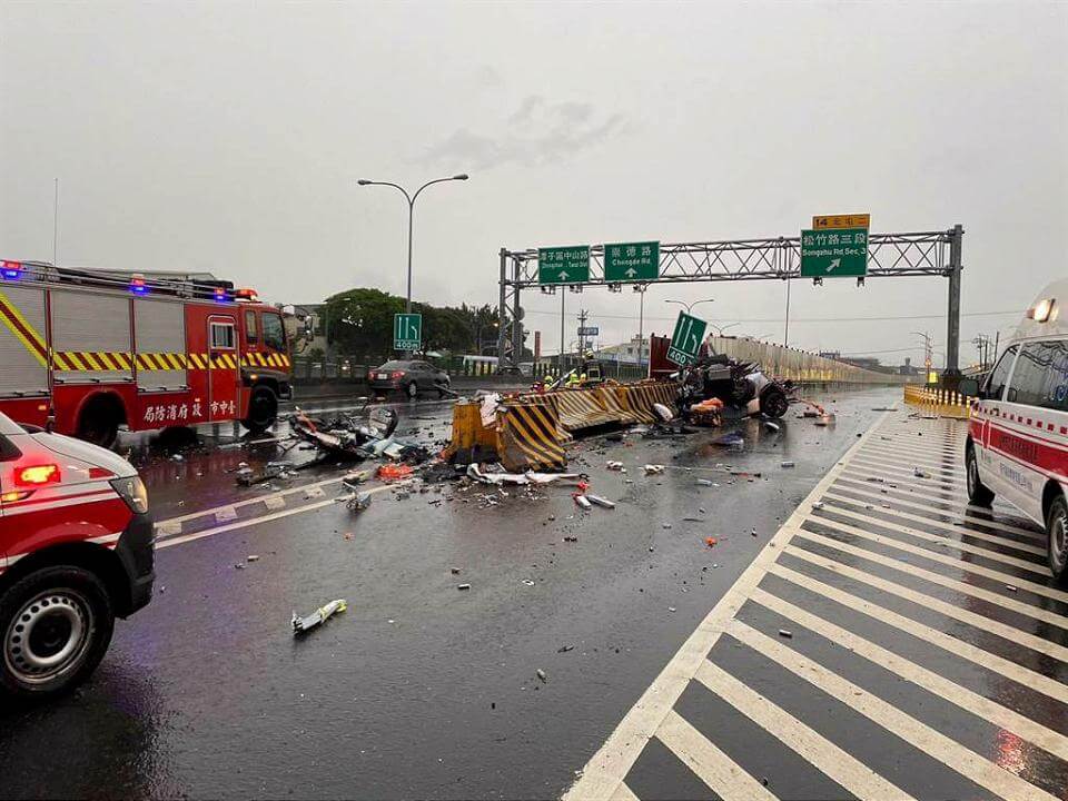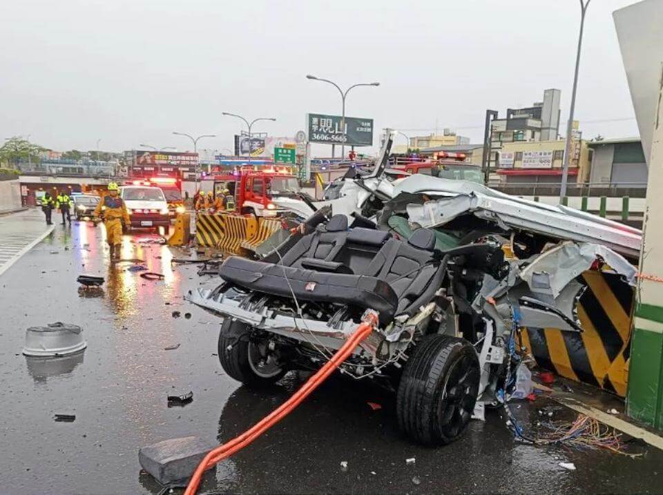 車禍現場整輛特斯拉轎車撞的支離破碎,車殼、零件散落一地如同廢鐵,警消抵達時,車上2名男子都噴飛在車外,已經沒有了生命跡象,警消趕緊將人送醫急救,最後仍宣告不治。警方調查,死者楊姓男子(25歲)、洪姓男子(24歲)經抽血檢測,2人血液中酒精濃度都超標,由於車禍發生後,2人分別倒臥在車道上,對於是誰酒後開車還要釐清。