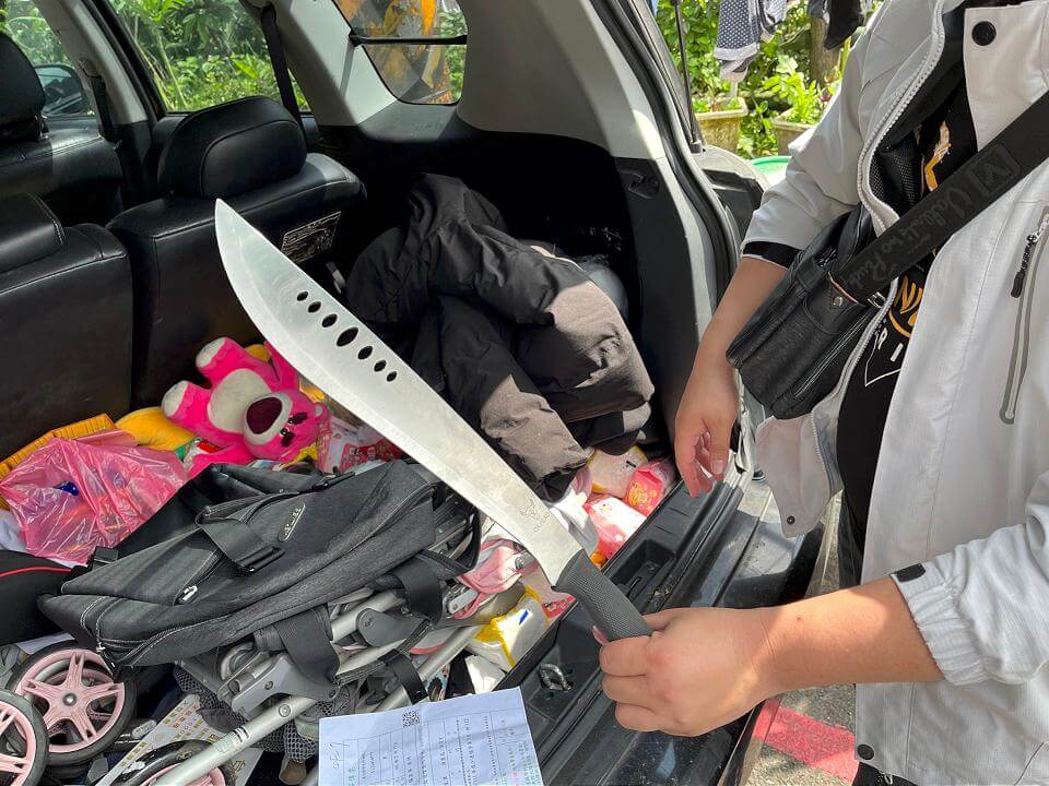 警方查扣開山刀。畫面讀者提供