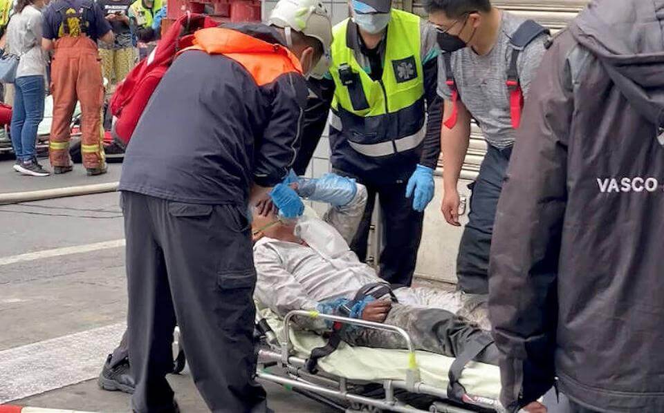 警消將受困廠房內的員工救出送醫。畫面讀者提供