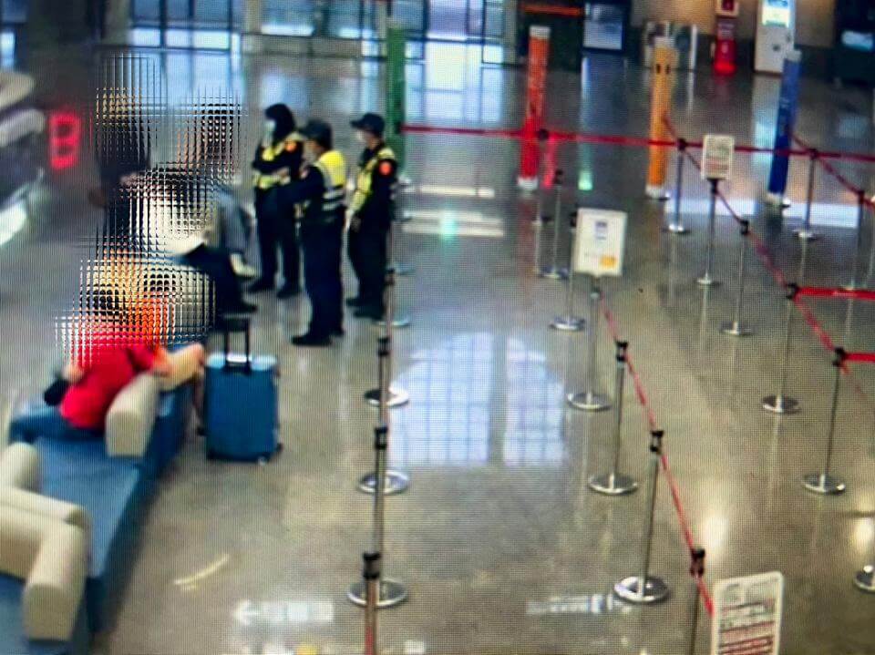 警方在航廈內發現男子正在等待班機。畫面讀者提供