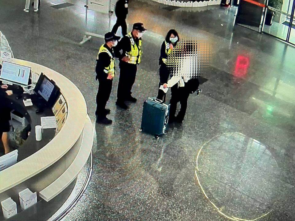 航警在機場即時攔阻被愛沖昏頭男子陷入愛情陷阱。畫面讀者提供