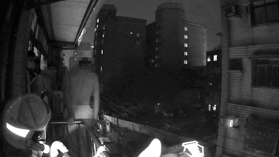 桃園警分局景福派出所4日18時許接獲民眾報案,有名男子持刀站在某住宅4樓窗戶外平台揮舞險象環生,因此立即派員前往,同時警消也迅速到達現場,並在一樓鋪設氣墊防止男子不慎墜樓,經過1小時僵持後,警方趁男子沒注意時射擊電擊槍,警消同步上前將人抱住拖回,化解了這場危機。