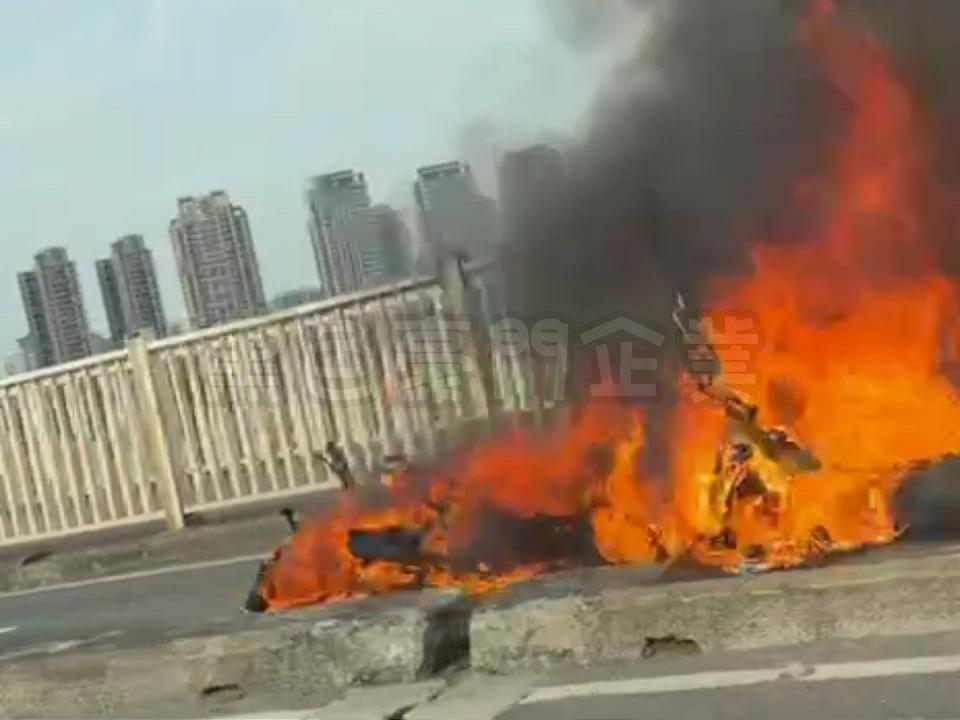 華中橋上發生機車交通事故起火燃燒。翻攝黑色豪門企業
