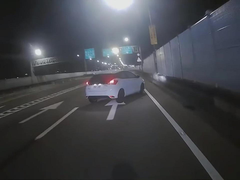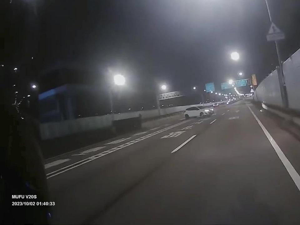 台北市市民高架快速道路,2日凌晨1時許竟有人開車在匝道口來個大迴轉,這誇張的舉動讓對向的車輛都嚇了一跳,還好當時正值深夜車輛較少,才沒有發生意外,警方表示已經接到檢舉依法受理。