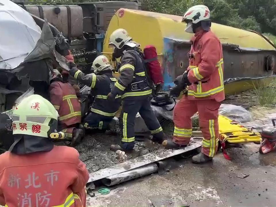新北市貢寮區桂安街12日上午10時許,發生1輛化學槽車翻覆意外,駕駛當場受困在變形車頭內,槽車裝載的次氯酸鈉(漂白水)不斷外洩,警消獲報後前往救援,經過約1小時搶救,將已經沒有生命跡象駕駛救出送醫,相關車禍發生原因還要釐清。