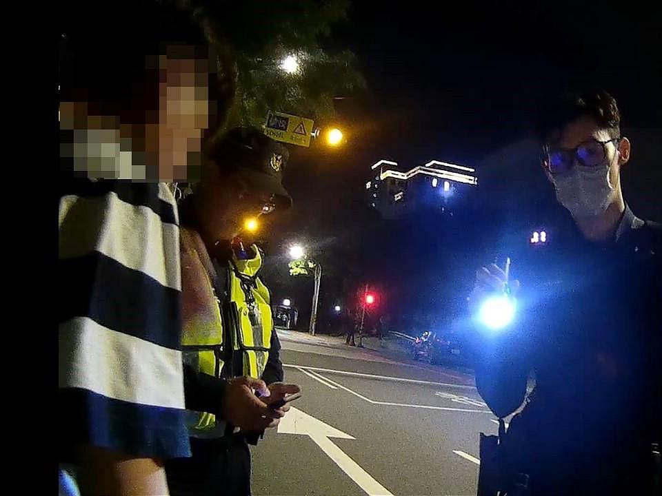 謝姓駕駛車內散發酒味,員警要求進行酒測。讀者提供