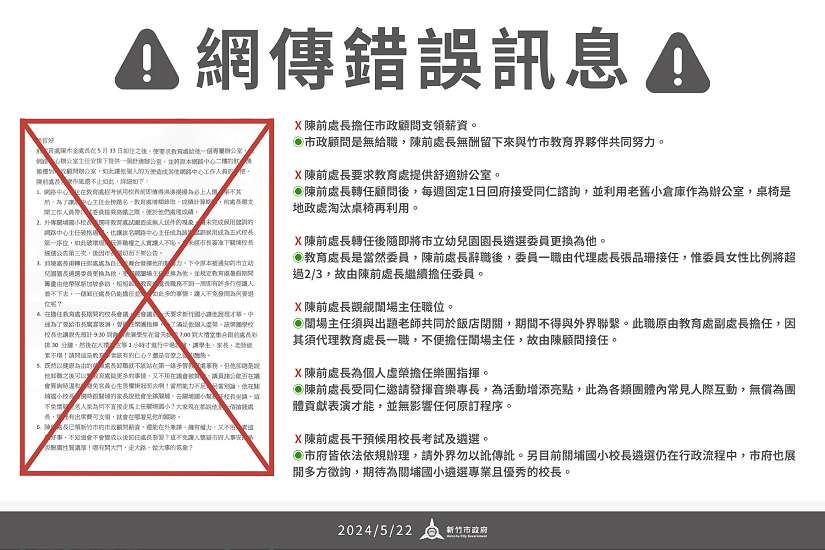 新竹市政府在(21)日接獲訊息,有心人士大量匿名散佈教育處黑函,已知議員、媒體、市府皆已收到,嚴重影響市府教育處名譽,籲請各界勿以訛傳訛!