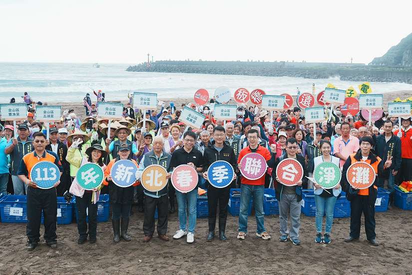 新北市環保局於本周末(4)日舉辦「113年度春季聯合淨溪灘活動」,於新北市轄內沿海行政區擴大辦理,本次淨灘主場地位於金山區磺港金青沙灘,同時也在新莊十八份坑溪及新店溪灣潭等地點淨溪,結合在地鄉親、機關學校、企業及民間團體一起動起來,挽起衣袖清理河川及海洋廢棄物,今日共計清出2,359公斤垃圾及884公斤資收物,用實際行動愛地球。