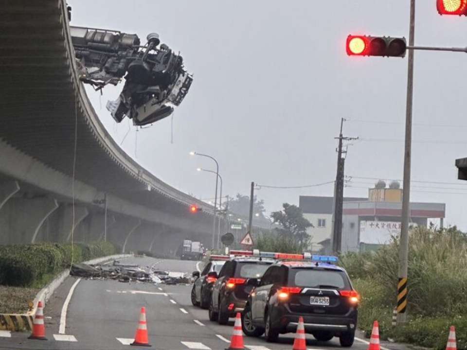 台61線南下51公里新屋路段,13日凌晨3時許發生聯結車撞破護欄,整台車掛在高架道路上,還波及2名機車騎士受傷,而聯結車駕駛則當場失去生命跡象,經送醫急救後已經恢復呼吸心跳,但仍有生命危險,相關事故發生原因警方要釐清。