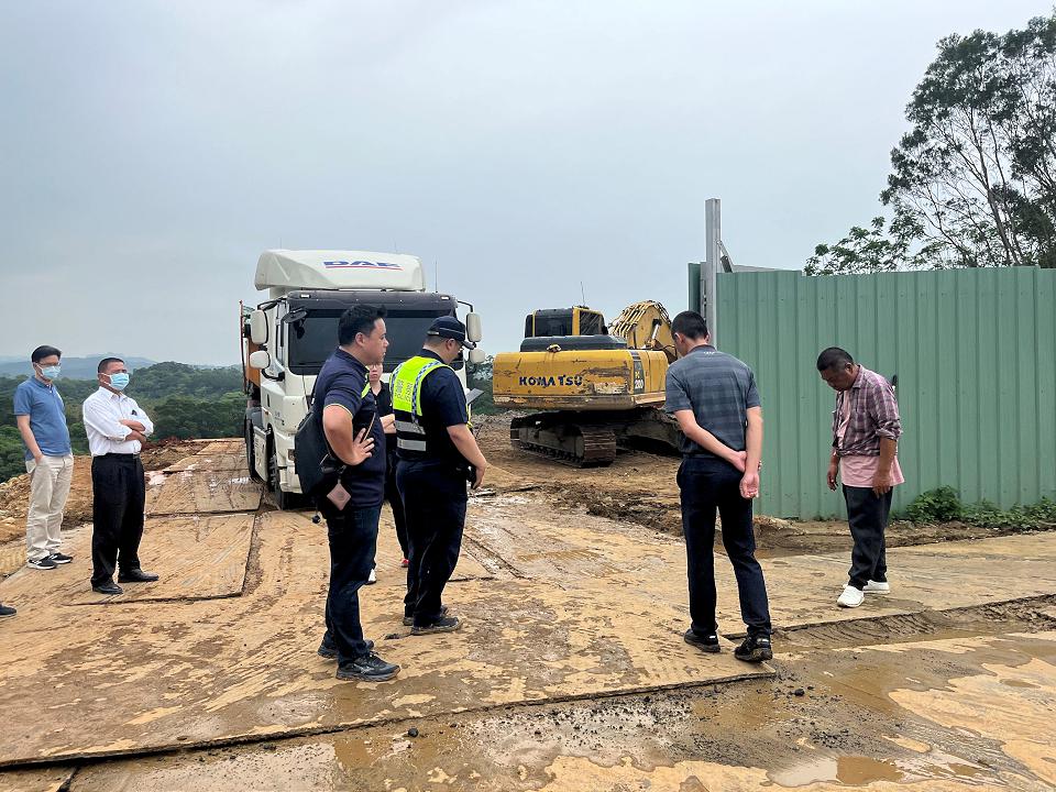 苗栗縣西湖鄉鴨母坑段,農地屢遭不肖人士隨意傾倒土石,4月11日縣府相關單位人員前往會勘,經水土保持服務團技師現場勘查,有造成水土流失疑慮,因此現場立即查扣相關機具,藉此遏止農地遭隨意傾倒倒土石亂象。