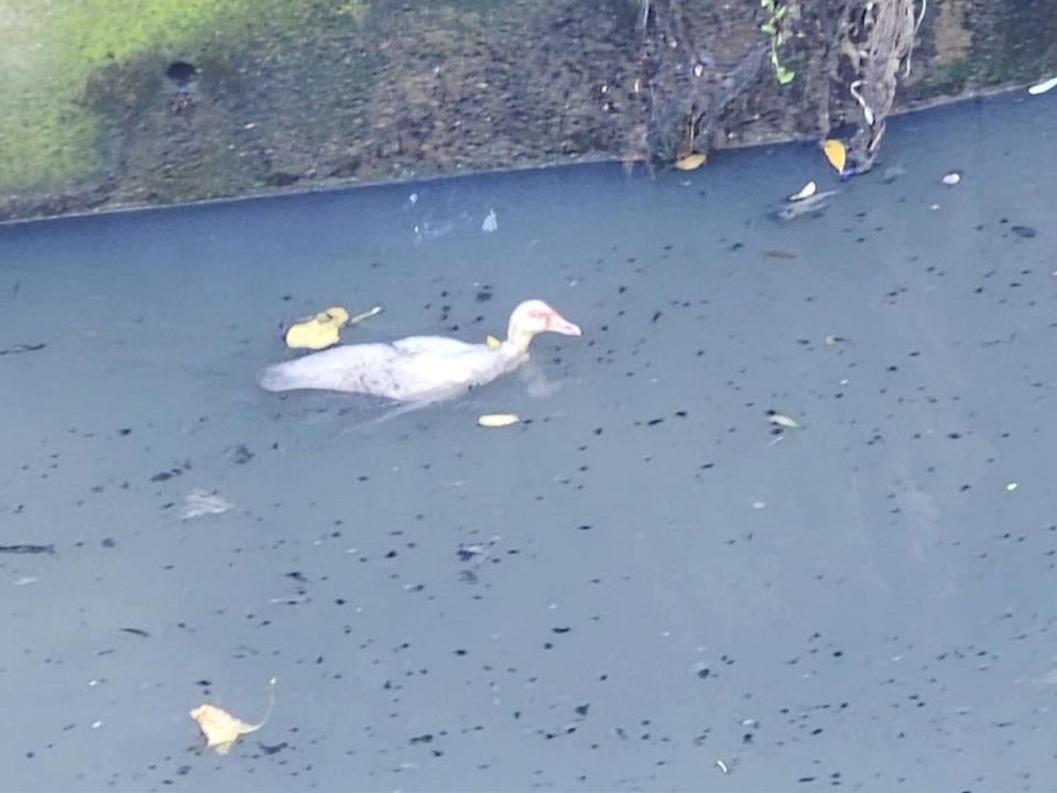 新北市動保處日前接獲新莊姓民眾通報,有1隻髒兮兮紅臉番鴨隻受困塔寮坑溪大排河岸,飽受風吹日曬雨淋生命垂危,請求緊急救援。動保員抵達現場發現這隻紅臉番鴨11月初就被其他民眾連續多次通報,但都礙於大排水溝地形複雜水深難測,加上鴨子水中行動敏捷又飛又跳,救援行動皆以失敗收場。