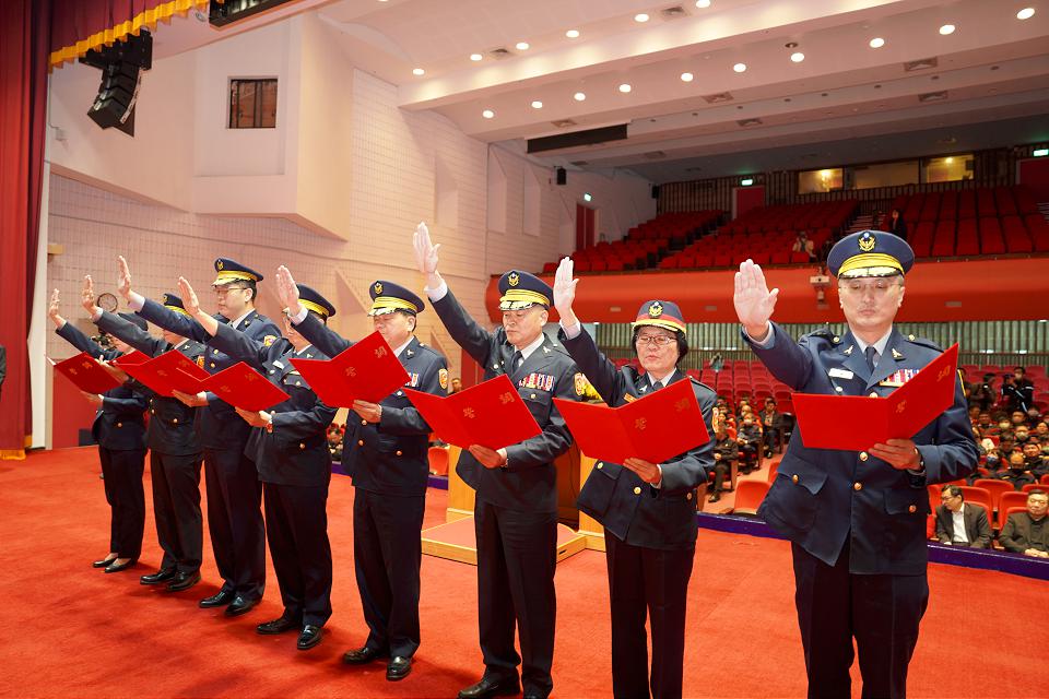 內政部警政署辦理全國警察機關重要警職人事調整作業,台北市警局17日上午9時由市長蔣萬安主持、市警局長張榮興擔任監交人,市長蔣萬安強調重點工作項目及核心價值,期望能縝密規劃勤務、主動積極執行,對治安、交通維護工作不遺餘力,讚許警察同仁全年無休地守護本市市民生命財產安全。