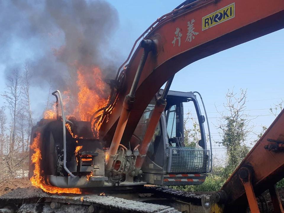 桃園市中壢區福達路2段468巷內,11日上午9時許發生挖土機火警,這輛挖土機事發時並沒有人操作,警消抵達時引擎室已經冒出火舌,所幸沒有發生延燒,火勢很快就被撲滅,對於起火原因還要調查。