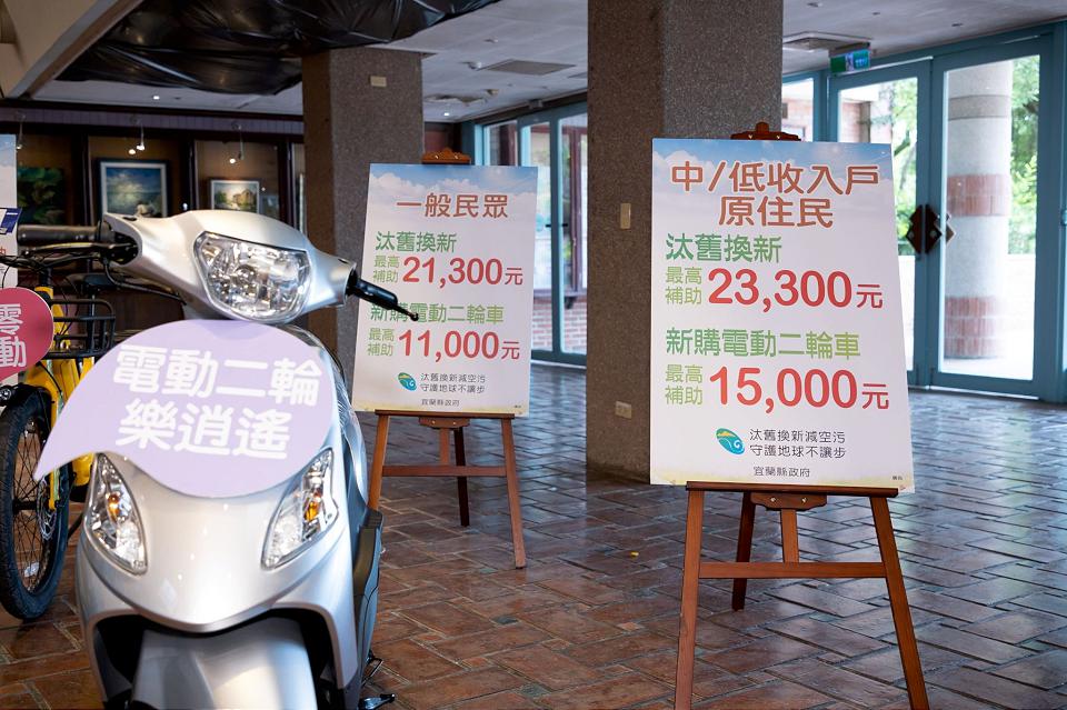 為推廣以電動機車取代傳統燃油機車,宜蘭縣環保局112年提供淘汰老舊機車,限定民國96年6月底前出廠,換購電動二輪車及新購電動二輪車等補助措施,重型電動機車最高可補助2萬3300元,時間只到年底為止,宜蘭居民動作要快。