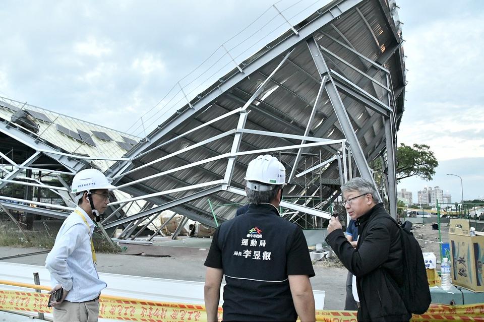 台中烏日籃球場29日發生光電頂棚工程坍塌意外,所幸現場無人傷亡。這次發生支架倒塌事件,範圍約1座籃球場,現場無施工、無人受傷,施工範圍已全面設立封鎖線,運動局將追究相關責任外,後續持續要求施工安全。