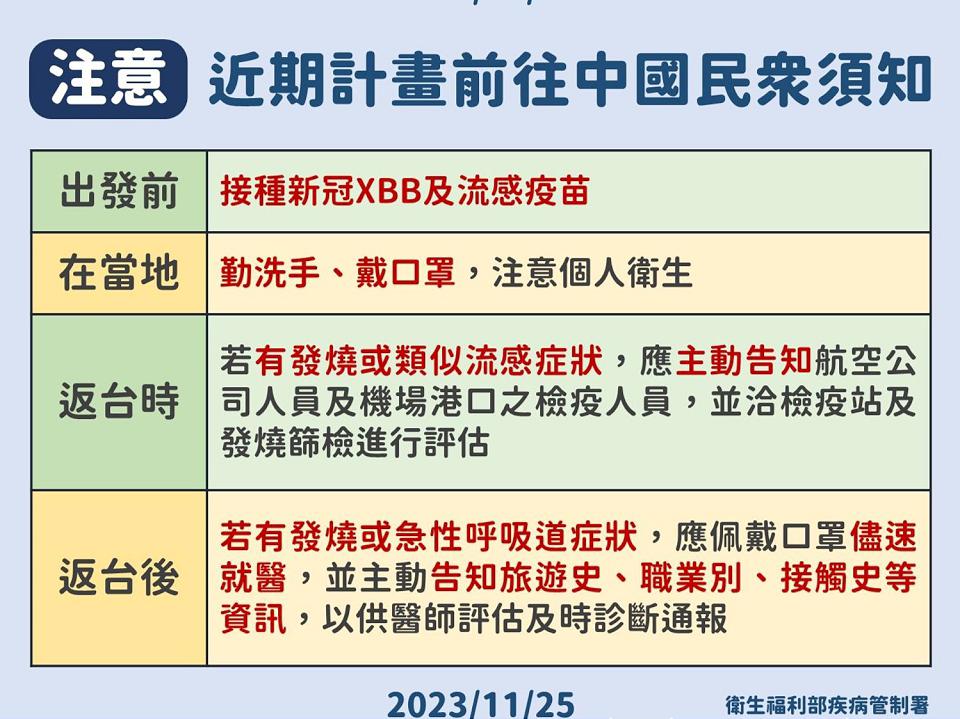 前往中國民眾須知。翻攝衛服部