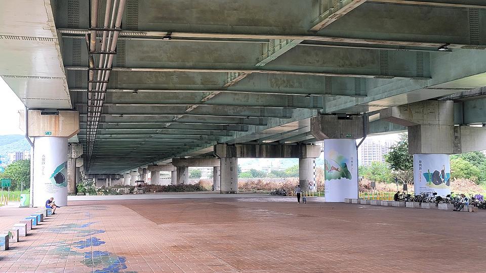 新北河濱公園的三重中山橋及板橋浮洲橋下廣場除是市民從事戶外休閒運動及停駐休憩首選,也為原住民族辦理歲時祭儀的場所,為營造橋下廣場空間,將16個原民族神話傳說,印製於塑膠帆布包覆於橋柱及橋墩上,加上於廣場周邊新增的座椅及解說牌,讓原住民族朋友辦理聚會活動有更優質的場所可使用。