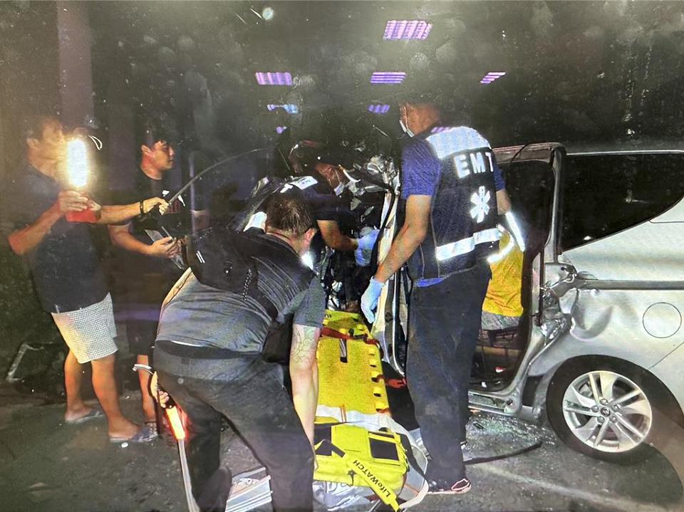 屏東市龍華西路25日21時許發生死亡車禍,1名男子酒後開車載3名友人自撞圍牆,由於衝撞力道相當大,酒駕男子當場受困車內,經警消破壞車體救出,緊急送醫後仍傷重不治,而同車3名友人則受重傷,還在醫院救治觀察中。