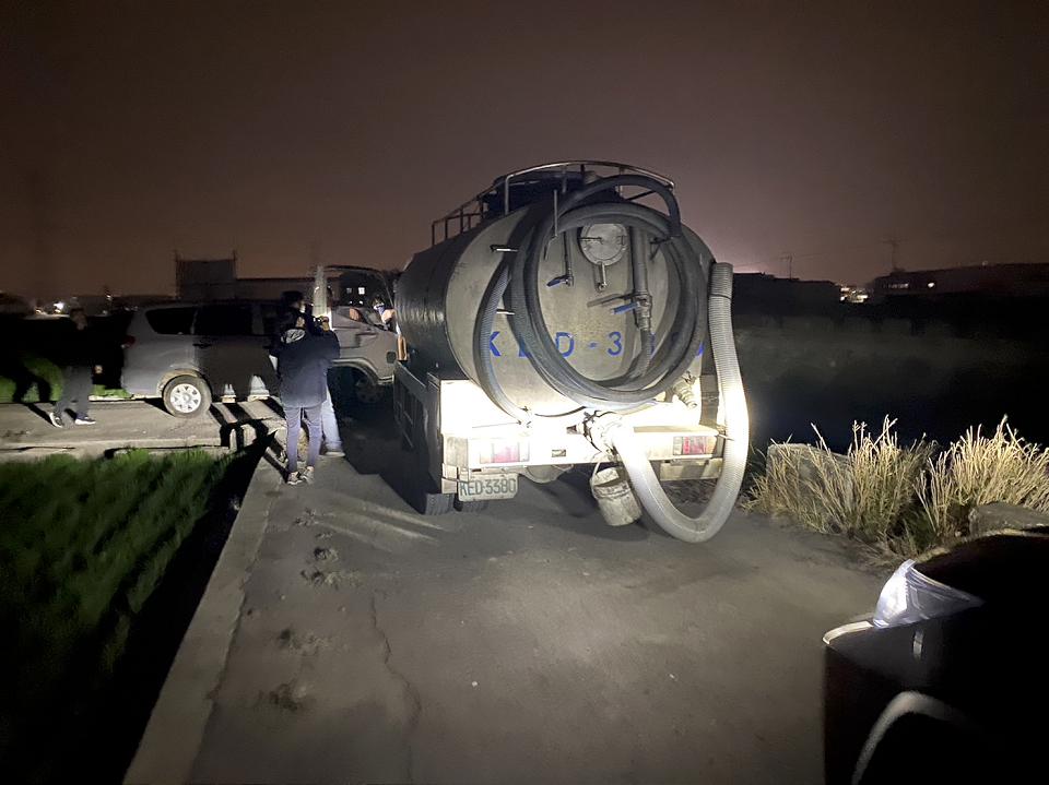 台中市烏日區東園里民3月眾發現,番仔園圳遭偷倒水肥及廢油水,台中市政府環保稽查現勘後隨即進行監控,會同內政部警政署保七總隊第三大隊佈線埋伏,查獲張姓嫌犯駕駛槽車,載運廢切削油傾倒,現場人贓俱獲。